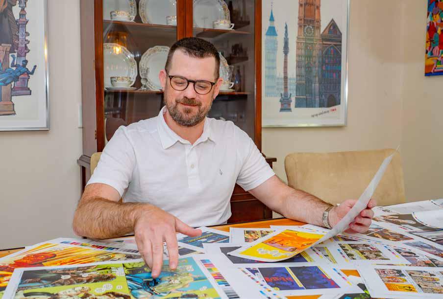 Today, he continues to work with impressive national comic connections, as well as producing work on dozens of books. He also offers branding services to locals.