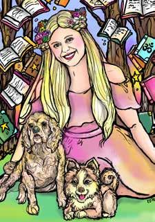 At the end of May, we lost our dog, Byron, who lived to the ripe old age of 17-plus. We were incredibly fortunate that he maintained fairly good health and every ounce of his spunk until the very end. Ed created this drawing before his passing, which I adored from the start, but now it means even more. It’s a frozen moment of beautiful bliss, just me and my fur babies (Tennyson too).