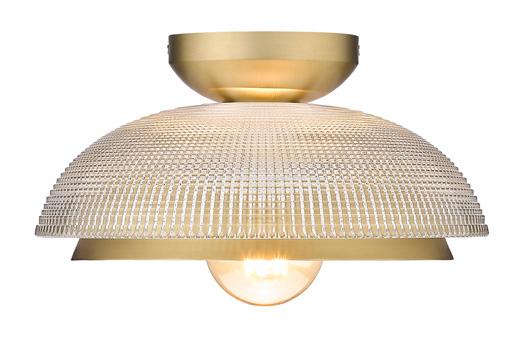 Evocative of the Art Deco style of the glamorous roaring twenties, this flirty, vintage-inspired design has mid-century modern elements. The textured Retro Prism Glass skirts the smooth shade for a layered look that is pure feminine sophistication. Complete the glam look of this damp-rated fixture with an oversized globe bulb.