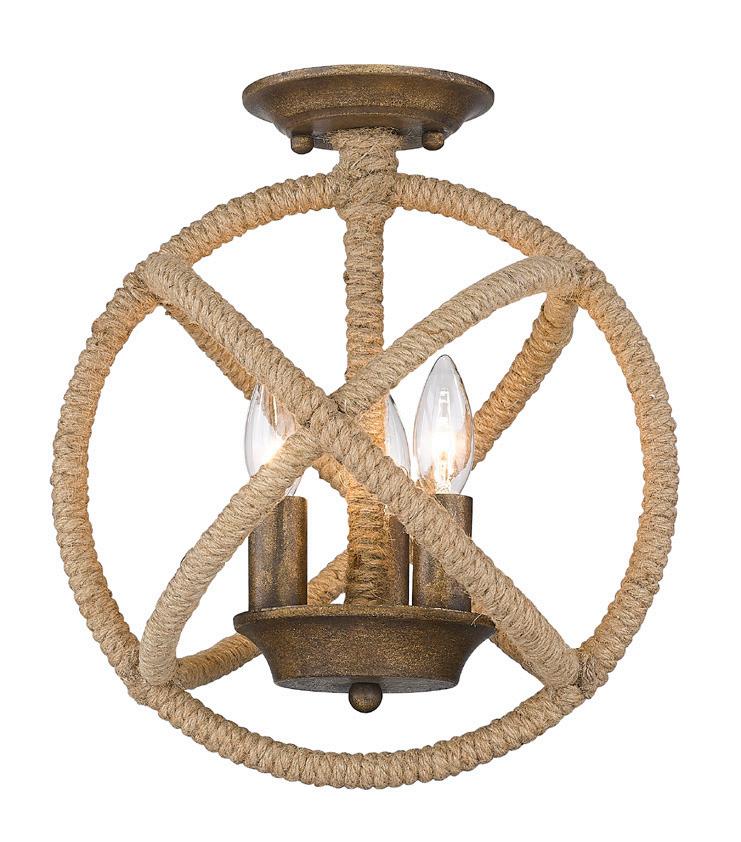 For more product information visit GoldenLighting.com 9 See form in 3D! 6930-3P VFG Vintage Fired Gold 14.375"L x 14.375"W x 19"H 3 x 60W(C) Wire: 10' / Rod: 1ea 6", 3ea 12"