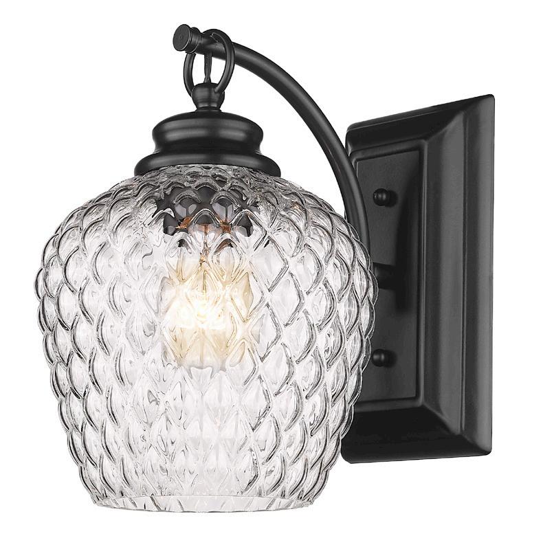1140-1W BLK-HWG Matte Black with Hammered Water Glass