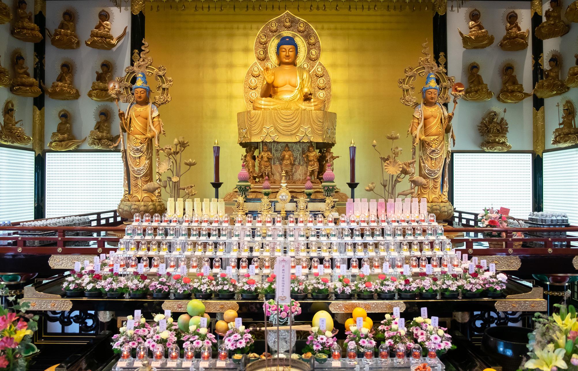 The Venerable Chao Khun Fa Zhao is greatly concern about the suffering of sentient beings. In order to help sentient beings to become free from all trials and tribulations, he promote the practice of the Medicine Buddha. This is because through invoking the power of the Medicine Buddha, sentient beings can become free from all forms of obstacles and disasters, enjoy a happy and fulfilling life, and progress swiftly on the spiritual path all the way until Perfect Enlightenment. Due to the blessings of the Triple Gems, a suitable piece of land for a new temple dedicated to the Medicine Buddha was acquired in 1989. The new temple was named Golden Pagoda Buddhist Temple. Construction work on the new temple began in 1990 and was completed in early 1992. In the same year, it became a registered society under the Registrar of Societies. Subsequently in 1995, it was registered as a charitable organization. Currently Golden Pagoda Buddhist Temple has 12,000 devotees.