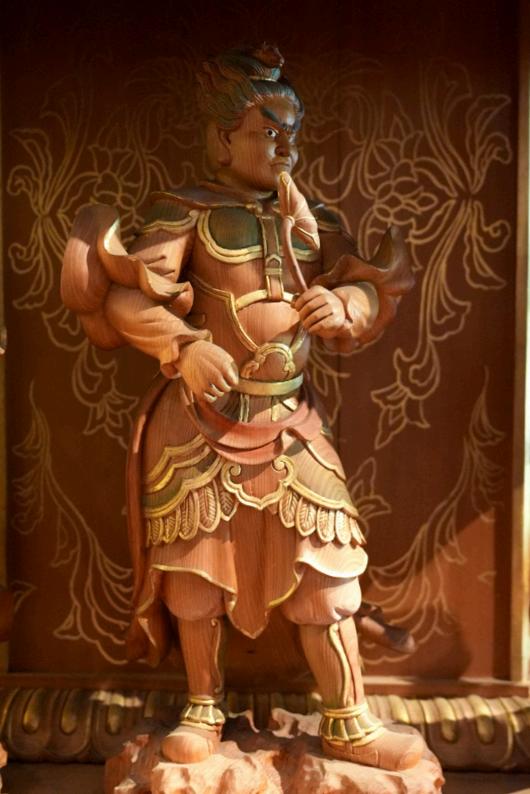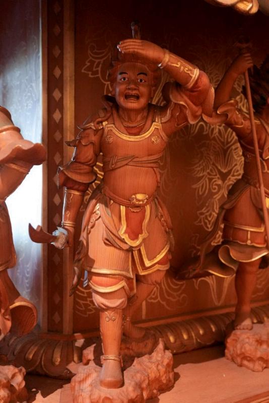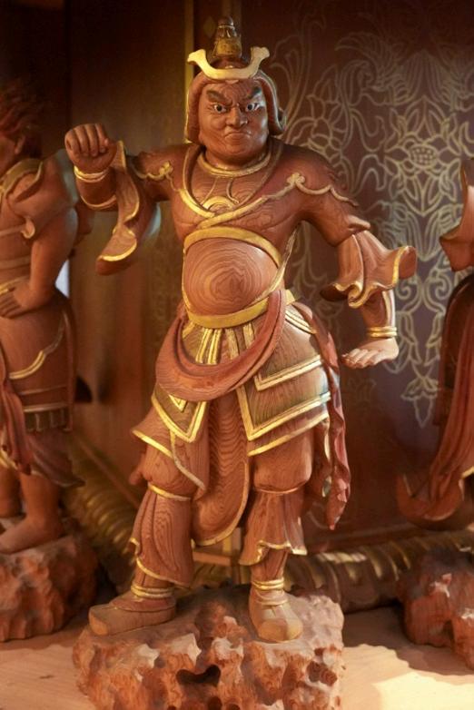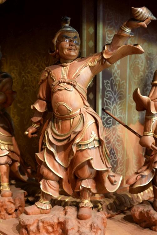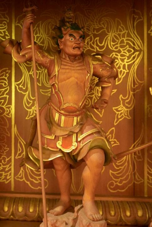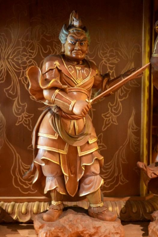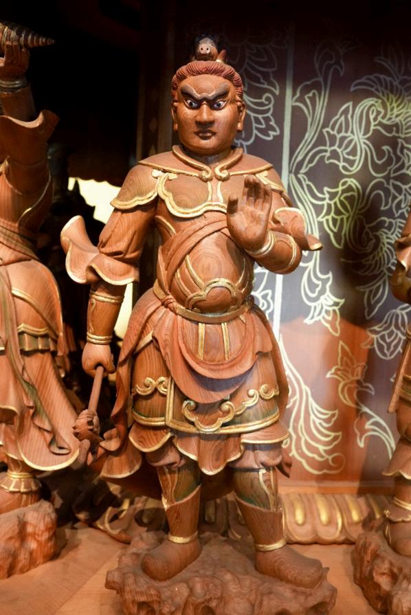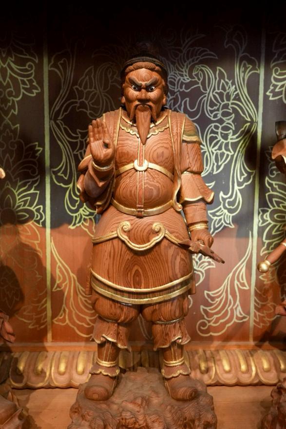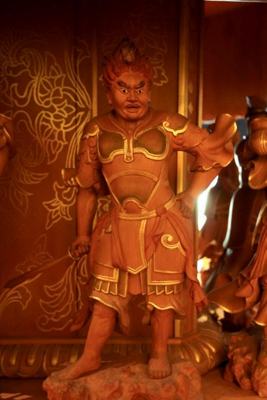 形象风采:身如珊瑚赤红,威严勇猛,手执金刚宝棍,象 征着无上的权势与力量,能于困境中为行者注入信心,扭 转乾坤。