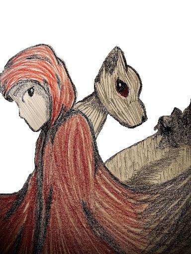 Crimson blotches stain my fur. My blotches have been painted by the thickets and thorns, spread widely throughout the forest. The shades of red bring back to me the memory of a young girl. One so full of life and going off to visit her grandmother. Her flesh wasn’t appealing, but she was the only option I had in the midst of my famine. I shudder at the blasphemous names she called me that day. When I close my eyes, I can still hear them at this moment. Her voice rings in my mind and reminds me that I am only acknowledged in this world when there is a gloom of fear. Her screams are a cruel reminder that my name is only worth muttering when preceded by my blasphemous title, and only for the use of scaring children around campfires or before bed.