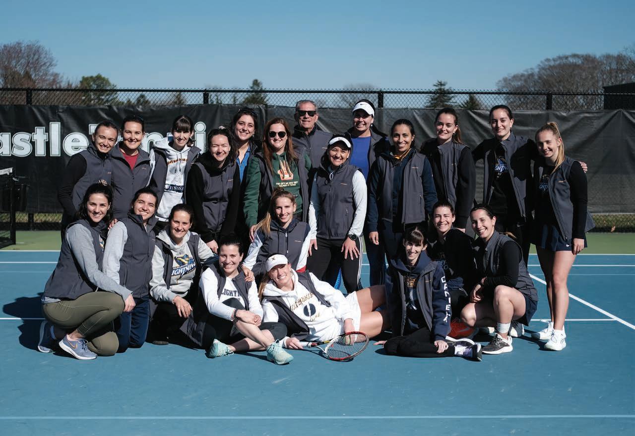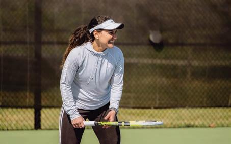 Former players had the opportunity to watch and support the current tennis team at their match against Southern New Hampshire on Saturday, April 2. After the match, both current and former players stepped onto the court and played friendly matches. Coach Kissel joined them to coach one more practice – but this time with more than 20 players on the court.