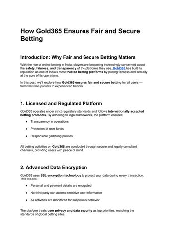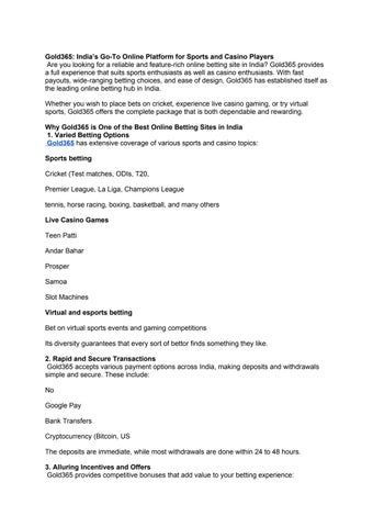 Gold365 is a fantastic platform for online gaming and betting, especially for Indian users. I love the variety of games like Teen Patti, Andar Bahar, and live sports betting. The interface is smooth, withdrawals are quick, and their customer support is always responsive. A great choice for anyone looking for a secure and enjoyable gaming experience! To know more visit - https://gold365ind.com