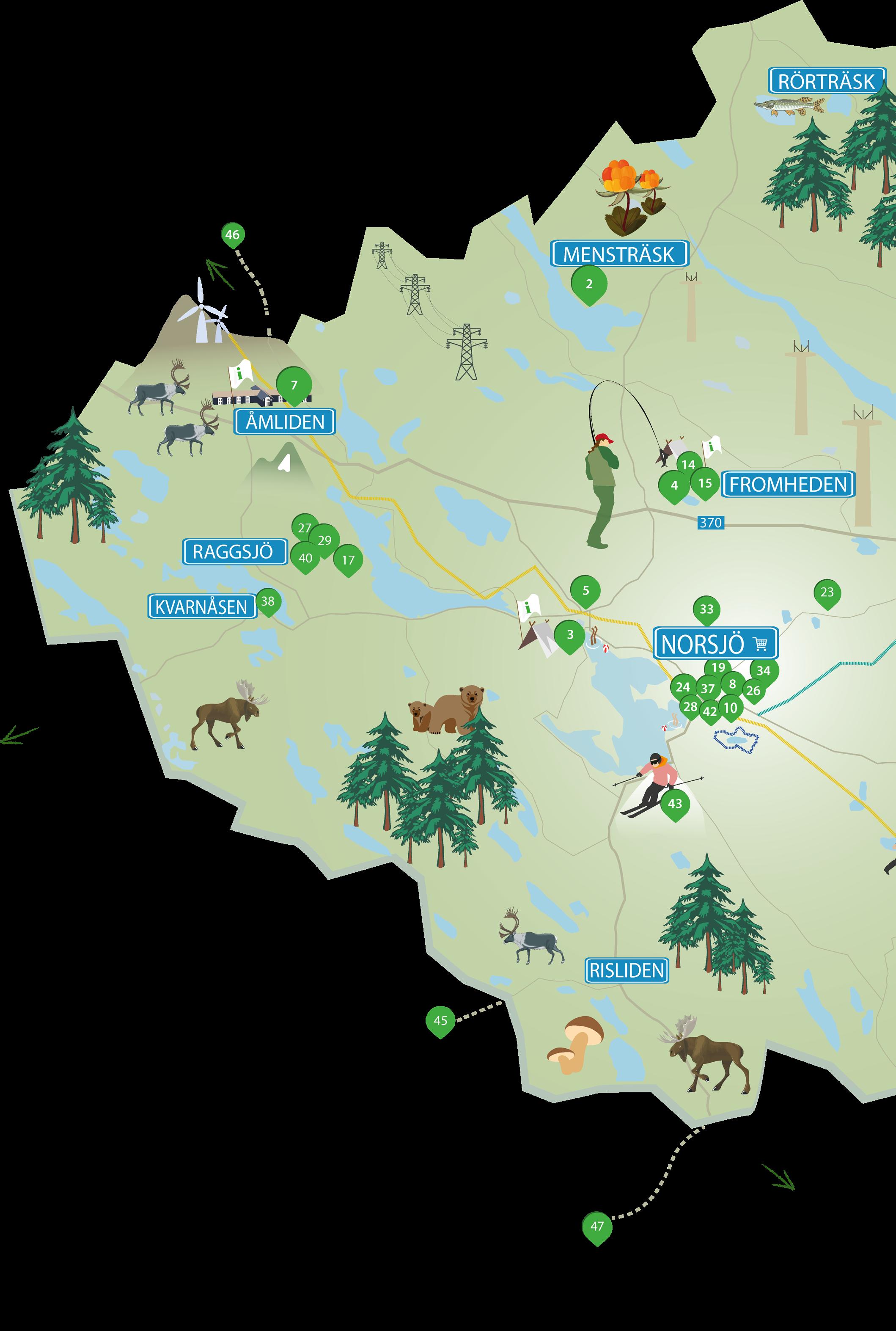 This guide was made in 2022 as a part of the project Synas Tillsammans. The aim of this guide is to make nature more accessible and to make people aware of all the great little gems we have have here in Norsjö. The information in this guide is partly based off of an inventory made by Norsjö Kommun in 2019 and things may have changed since then.