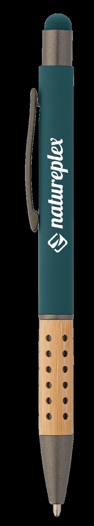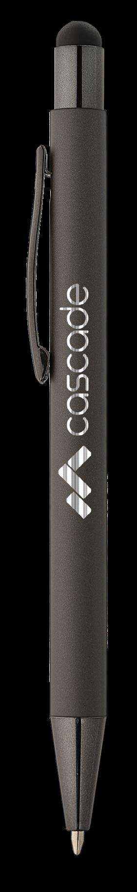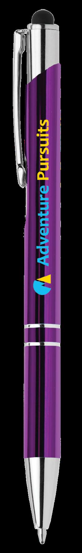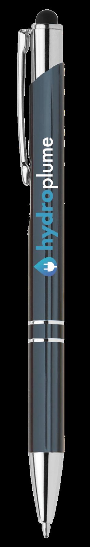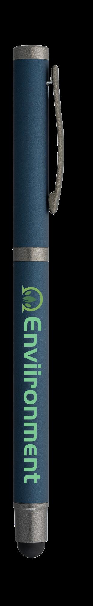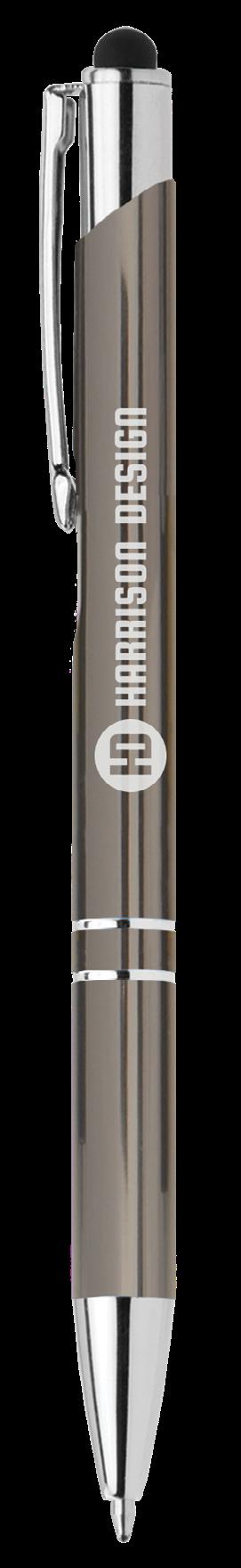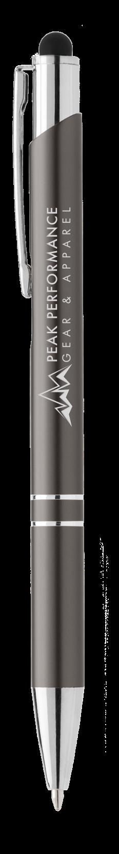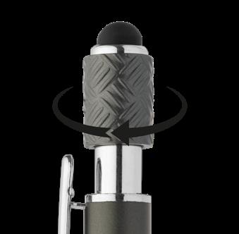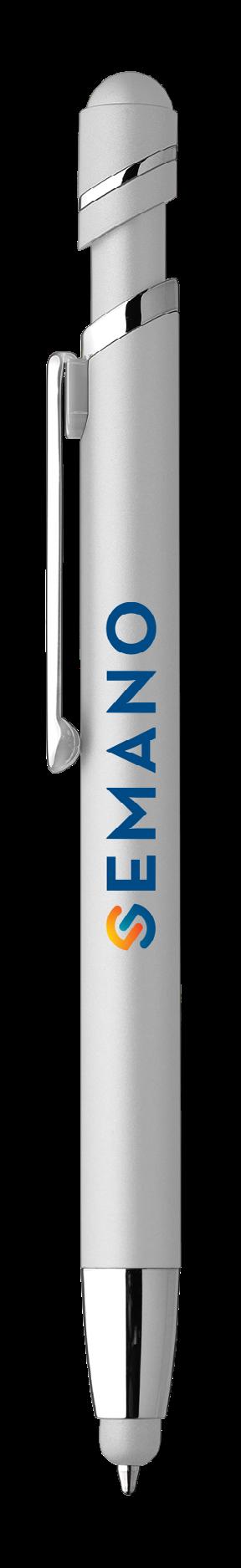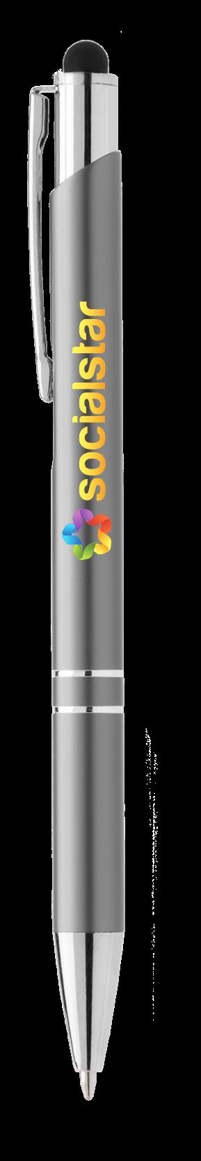 SAGA KUGELSCHREIBER MIT DRUCKMECHANISMUS UND STYLUS AUS RECYCELTEM ALUMINIUM » JBO