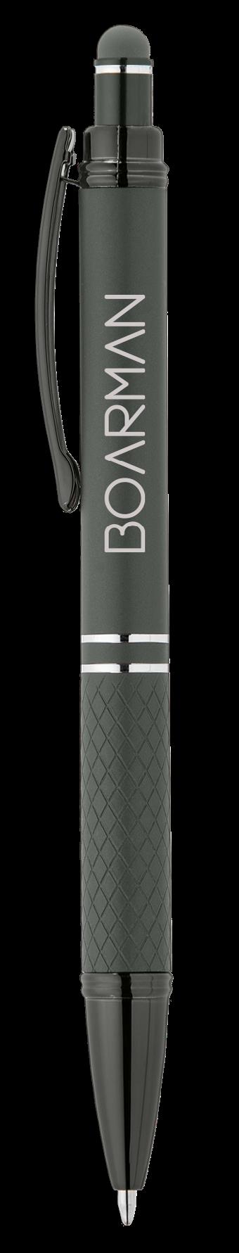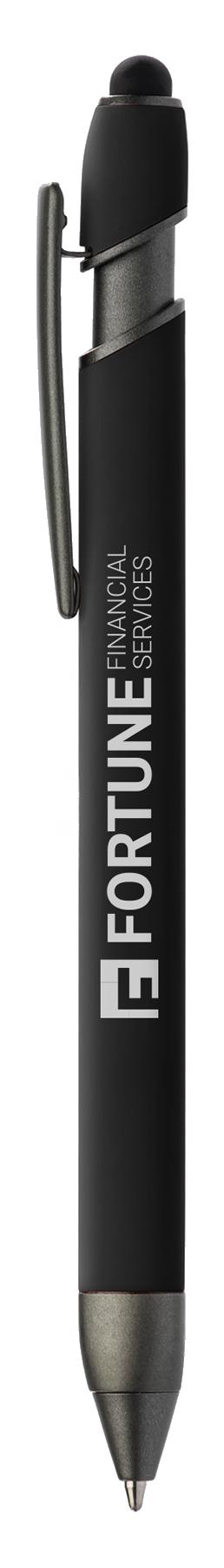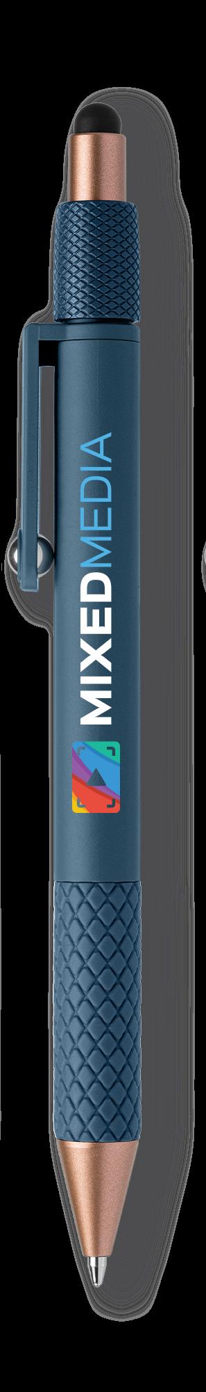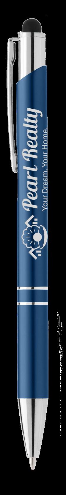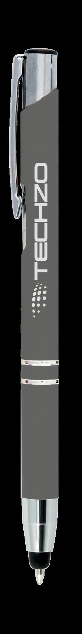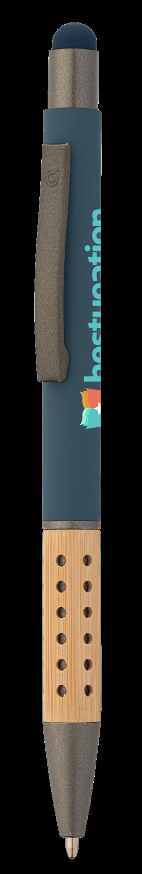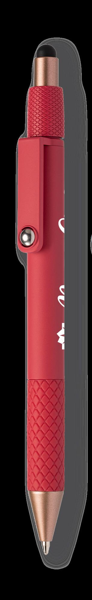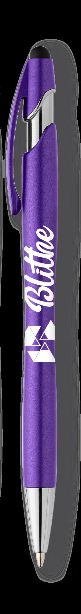 SAGA KUGELSCHREIBER MIT DRUCKMECHANISMUS UND STYLUS AUS RECYCELTEM ALUMINIUM » JBO