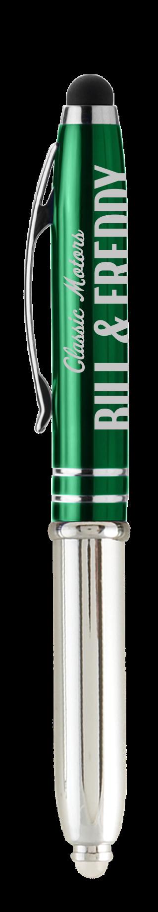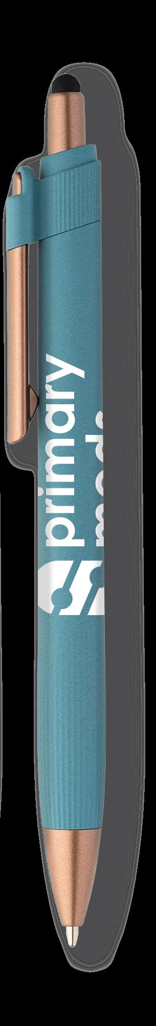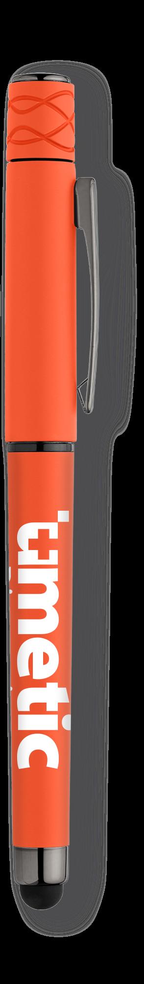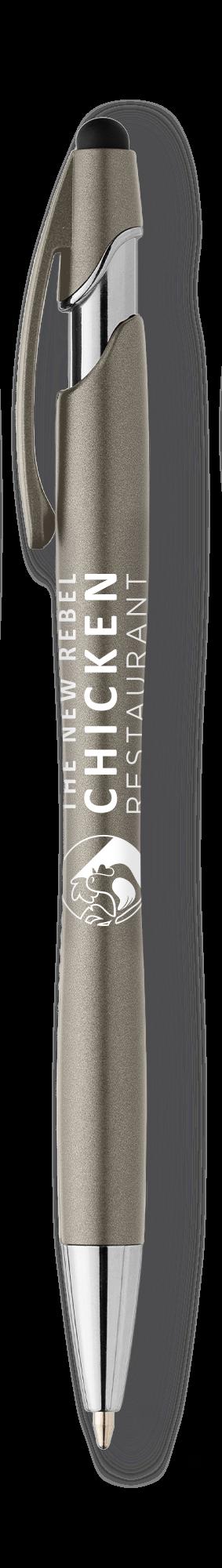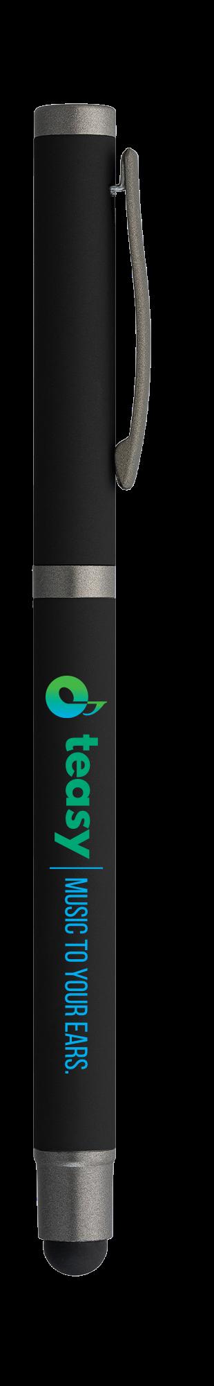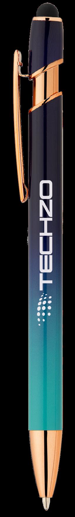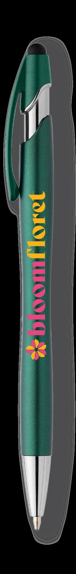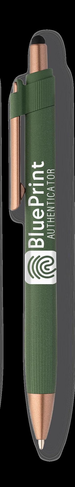 SAGA KUGELSCHREIBER MIT DRUCKMECHANISMUS UND STYLUS AUS RECYCELTEM ALUMINIUM » JBO