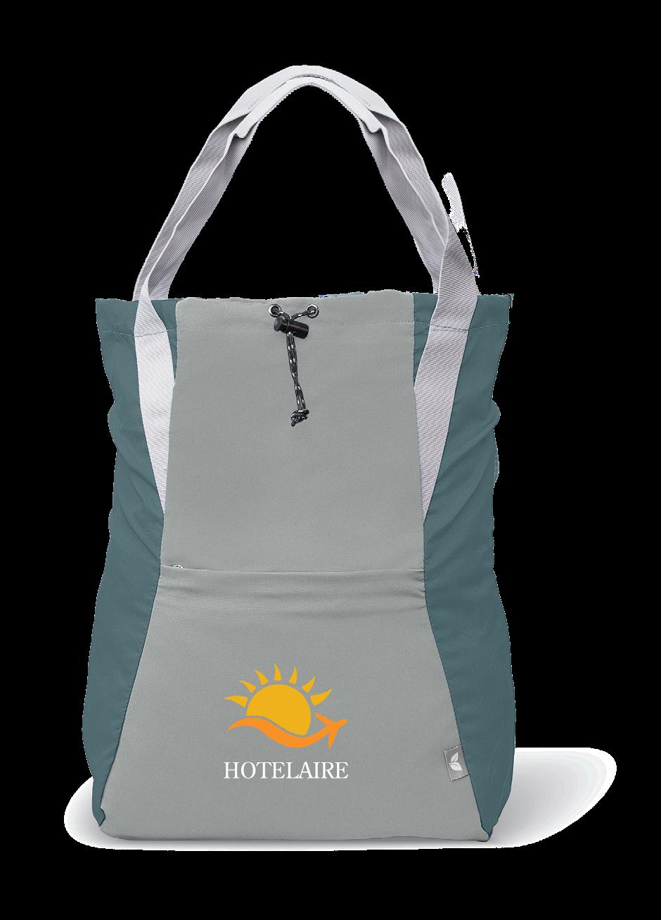 LE SAC SE PLIE SOIGNÉMENT DANS LA POCHE AVANT, GARANTISSANT LA VISIBILITÉ DU LOGO