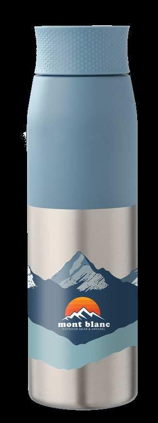 22oz. Recycled Stainless Steel Twist Lid Bottle • Deco Methods: Silkscreen, 2.5"w x 3"h | Full Color Inkjet 9.213"w x 3"h • MOQ: 50 Production: As quickly as 5 days • As low as $14.19 (c)