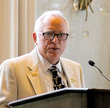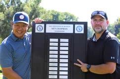 his time. He softened the hard line of the rules of golf with an approachable, outgoing personality and served as a rules official for over two decades. As a Golf Association of Michigan governor and chair of the Championship Committee, he worked at multiple Michigan Amateur Championships as well as championships for all age groups and genders; worked for the Michigan Section PGA at its top championships, including the Michigan Open; and went on to serve the USGA, officiating at six U.S. Opens, nine U.S. Senior Opens, and 14 U.S. Amateurs while also being on the USGA Mid-Amateur Championship Committee for 18 years. His grandson Matthew is now a student in the professional golf management program at Ferris State University and accepted the Hall of Fame plaque on his grandfather’s behalf.