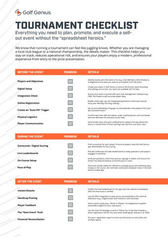 Golf Genius - FREE Tournament Checklist