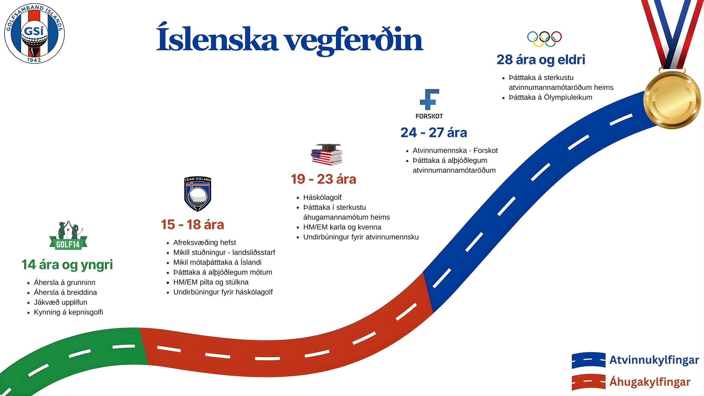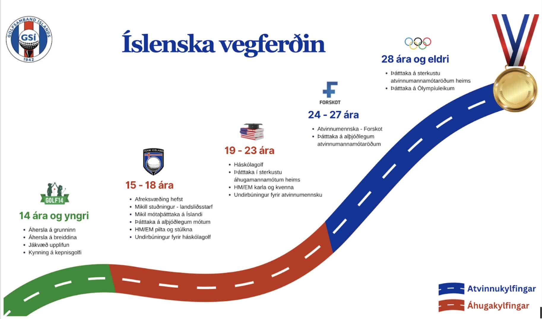 stuðningsnet,stuðning við þátttöku í alþjóðlegum golfmótum,æfingabúðir innanlands og erlendis.