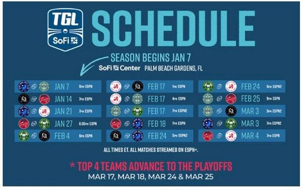 Six TGL teams representing six different cities will go head-to-head in a season-long competition at SoFi Center, a first-of-its-kind venue built specifically for TGL on the campus of Palm Beach State College. Matches will air on ESPN and ESPN+ in the U.S. with every shot live and all the players mic'd up, bringing unprecedented access to the competition for golf fans.