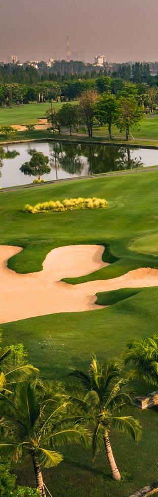 Riverdale Golf Club features Salam Paspalum grass on the tees and fairways, and MiniVerde Ultradwarf on the greens ensuring year-round playability. an intriguing challenge featuring ‘up hill and down dale’ golf never before seen in the Thai Capital’s predominantly flat golf landscapes. of holes. Nature will play its part in determining your final score – pockets of wetlands create wildlife havens continuing an eco-friendly theme prevalent.