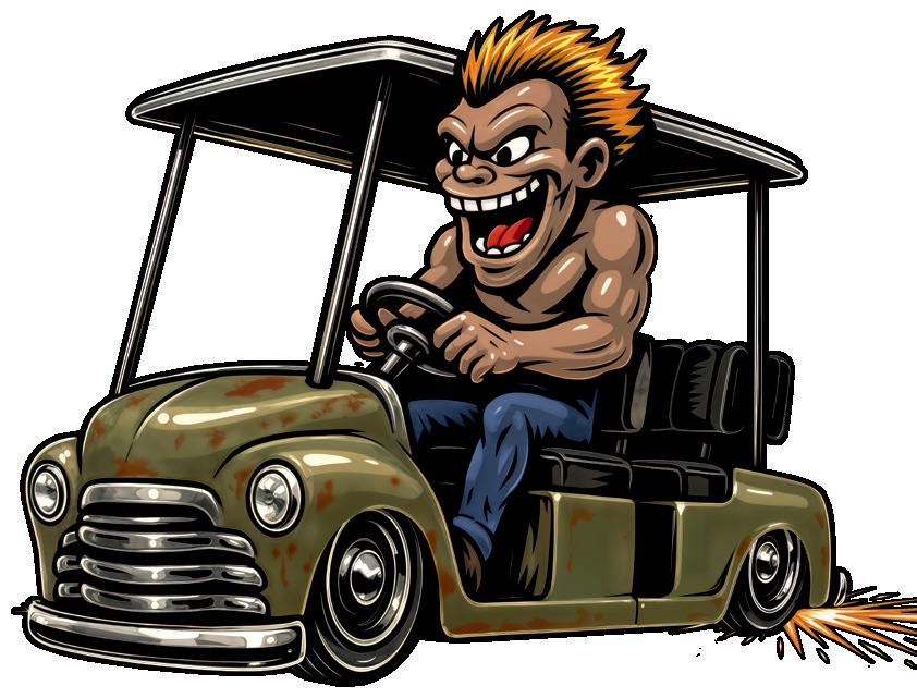 Our cover story takes you into the garage of Matt Townsend, a Southern California builder who's bringing RestoMod culture to golf carts with stunning results. His airbagged EZGO creation, featuring a 1940s Ford-inspired front end and sophisticated air ride suspension, demonstrates what happens when automotive styling meets golf cart practicality. From the patina finish to the customengineered shock system, this build redefines what's possible when vision meets fabrication skill.