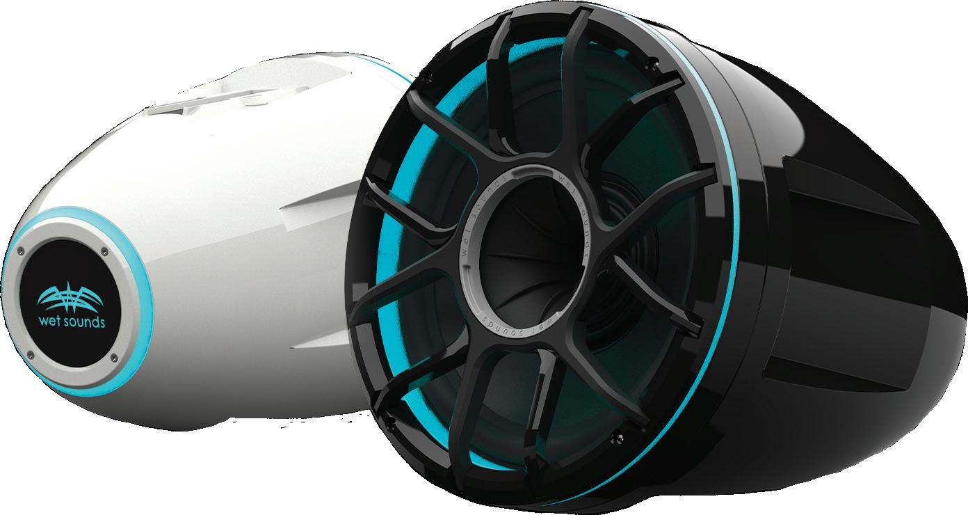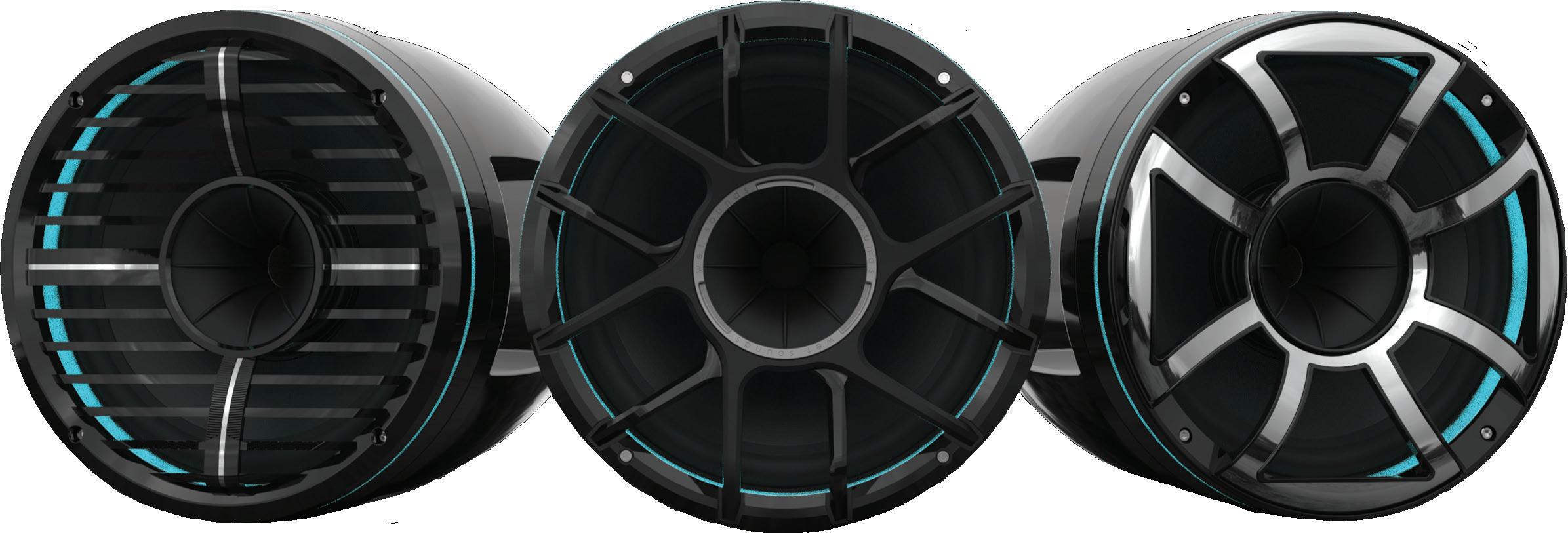 • Wet Sounds 12” REV-TEC™ HLCD Driver • Integrated Front & Rear RGB LED Rings • Rotatable RGB backlit logo • Rotatable Grille mounting • Advanced Composite enclosure built for the harsh marine environment • 1000-hour UV resistance (ASTM-D4587) • Salt Spray Resistance (ASTM-B117) • Stainless Steel Hardware • Sold in Pairs • 3 Grille Styles Available in Black or White including the all new XZ style grille • Utilizing Wet Sounds Patented TC3 Clamps (Swivel) “USA Patent 8,568,162” & New X-Mount