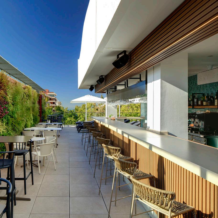 To extend the evening, head to the 360 Blue Sky Bar on the fifth floor. This rooftop bar is a real gem, offering panoramic views of Alameda Park, La Concha, and the white rooftops of the old town. Life flows there between cocktails, live music, DJ sets and more casual Mediterranean cuisine, making it an ideal venue for private events or those summer nights that seem to go on forever.