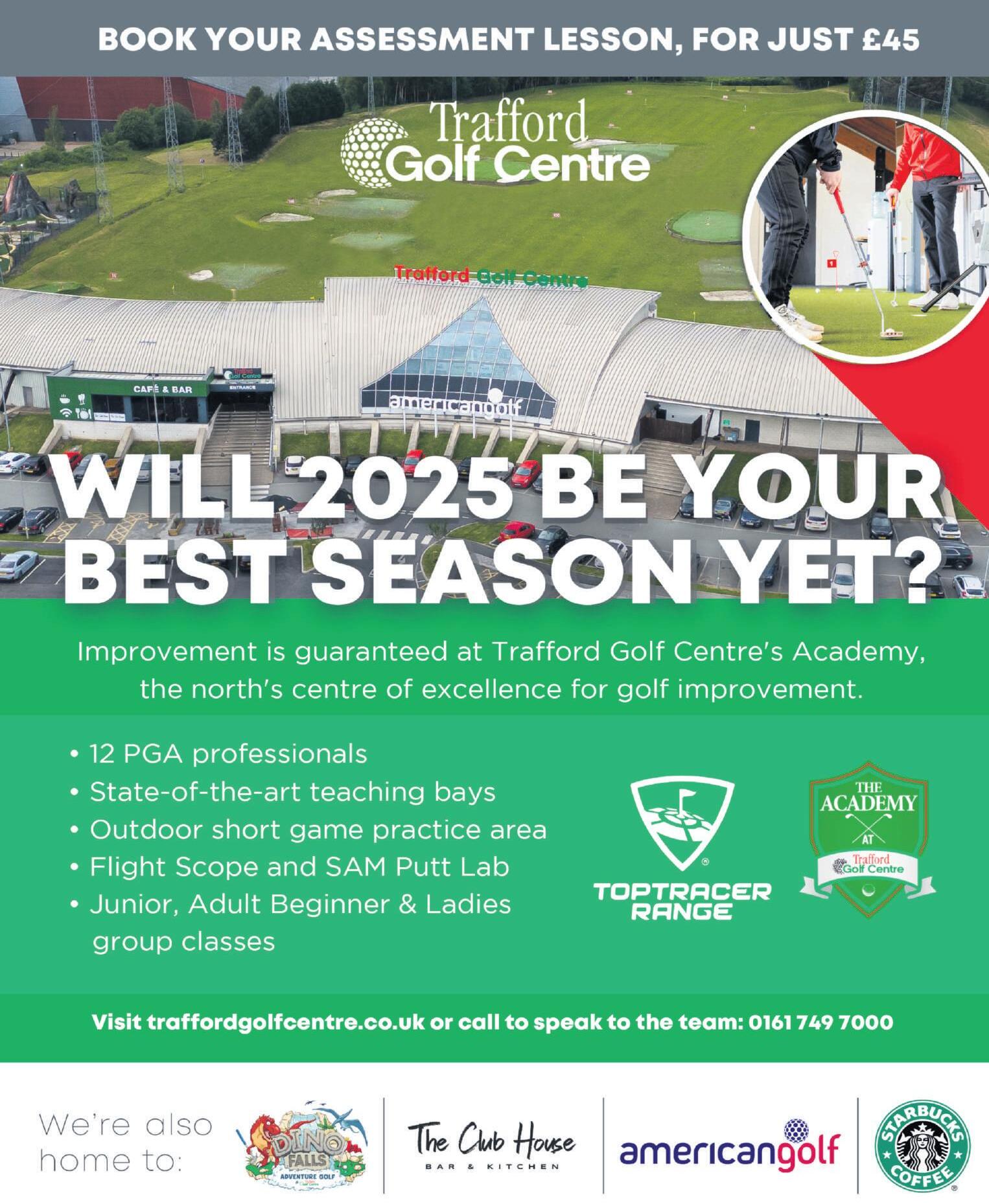 W ith more than 500,000 visitors in the past 12 months, Trafford Golf Centre continues to lead the way in making golf more accessible, welcoming 80,000 first-time golfers and delivering an impressive 25,000 lessons with its team of 11 PGA professionals