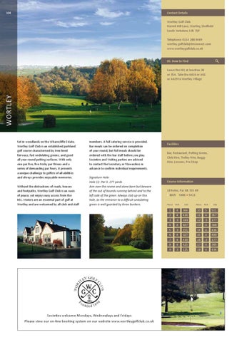 Societies welcome Mondays, Wednesdays and Fridays Please view our on-line booking system on our website www.wortleygolfclub.co.uk