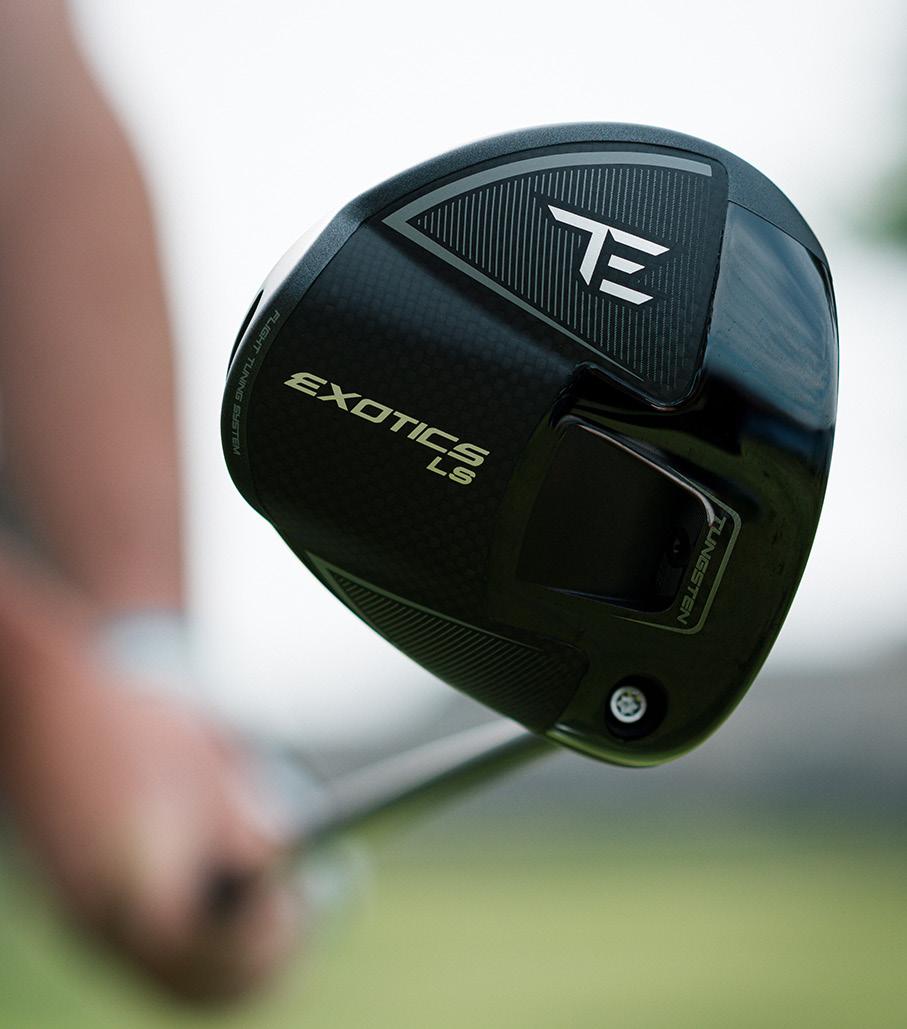 • Exotics LS Driver: Designed for highspeed players who demand low spin and workability, features a compact, tourinspired 440cc shape profile with front and back adjustable weights for customized launch. Despite its smaller footprint, the LS delivers one of the highest MOI ratings available in a low spin head, providing elite stability and control. Retail Price: $499.99
