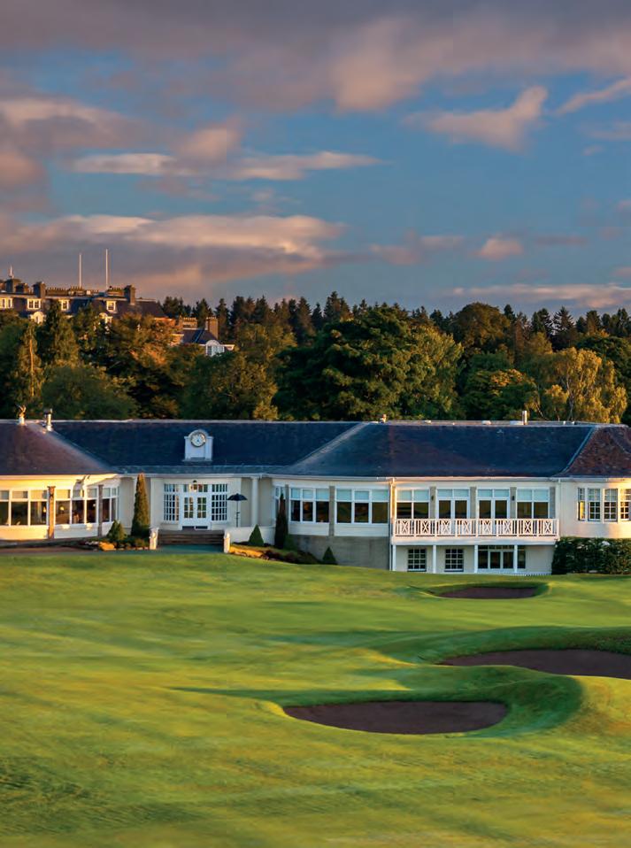 wood panelling, the interiors blend classic elegance with character. Deep green tones, plush leather seating and mosaic ooring create a welcoming yet re ned environment, perfect for relaxing before or after a round.