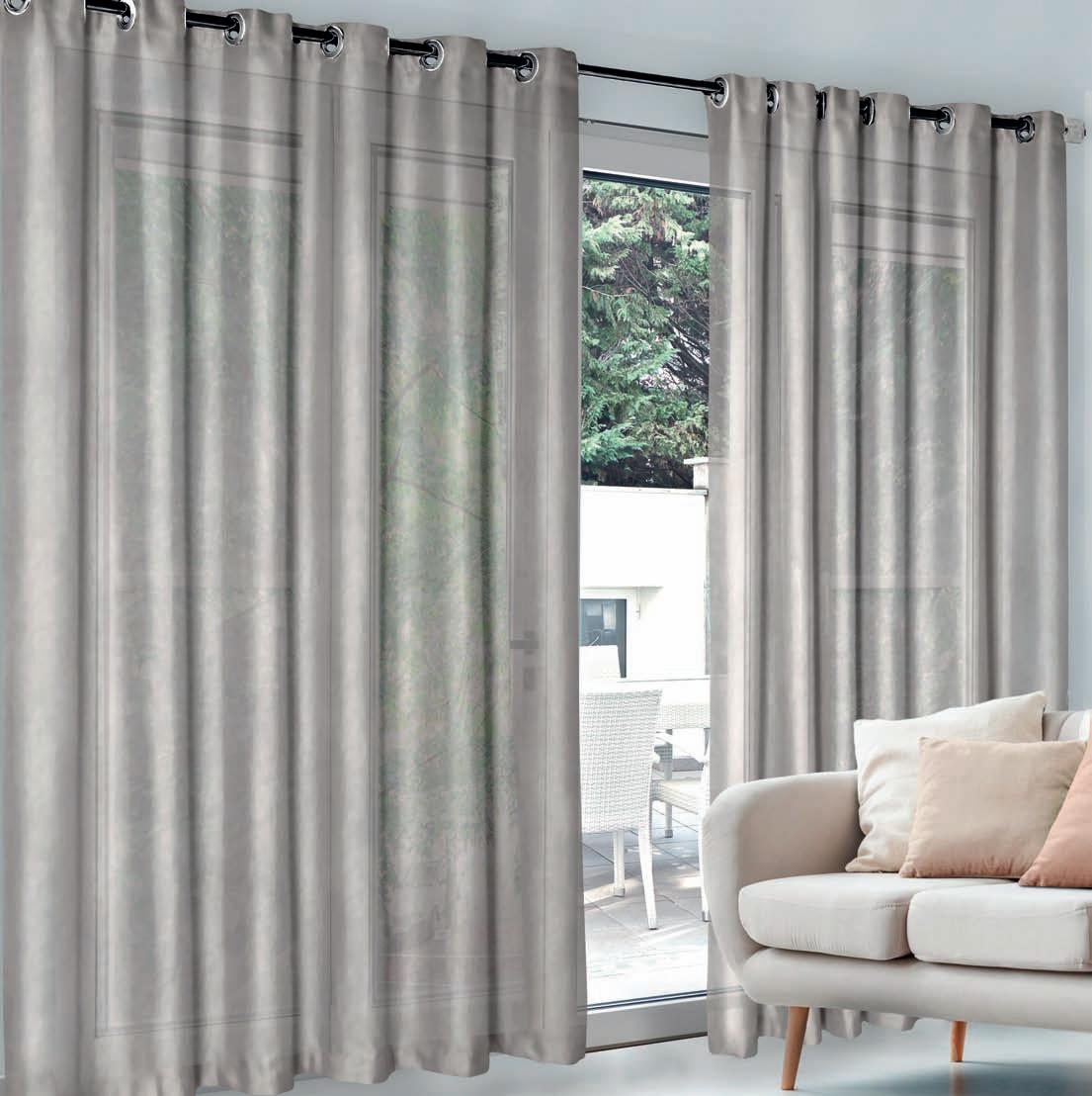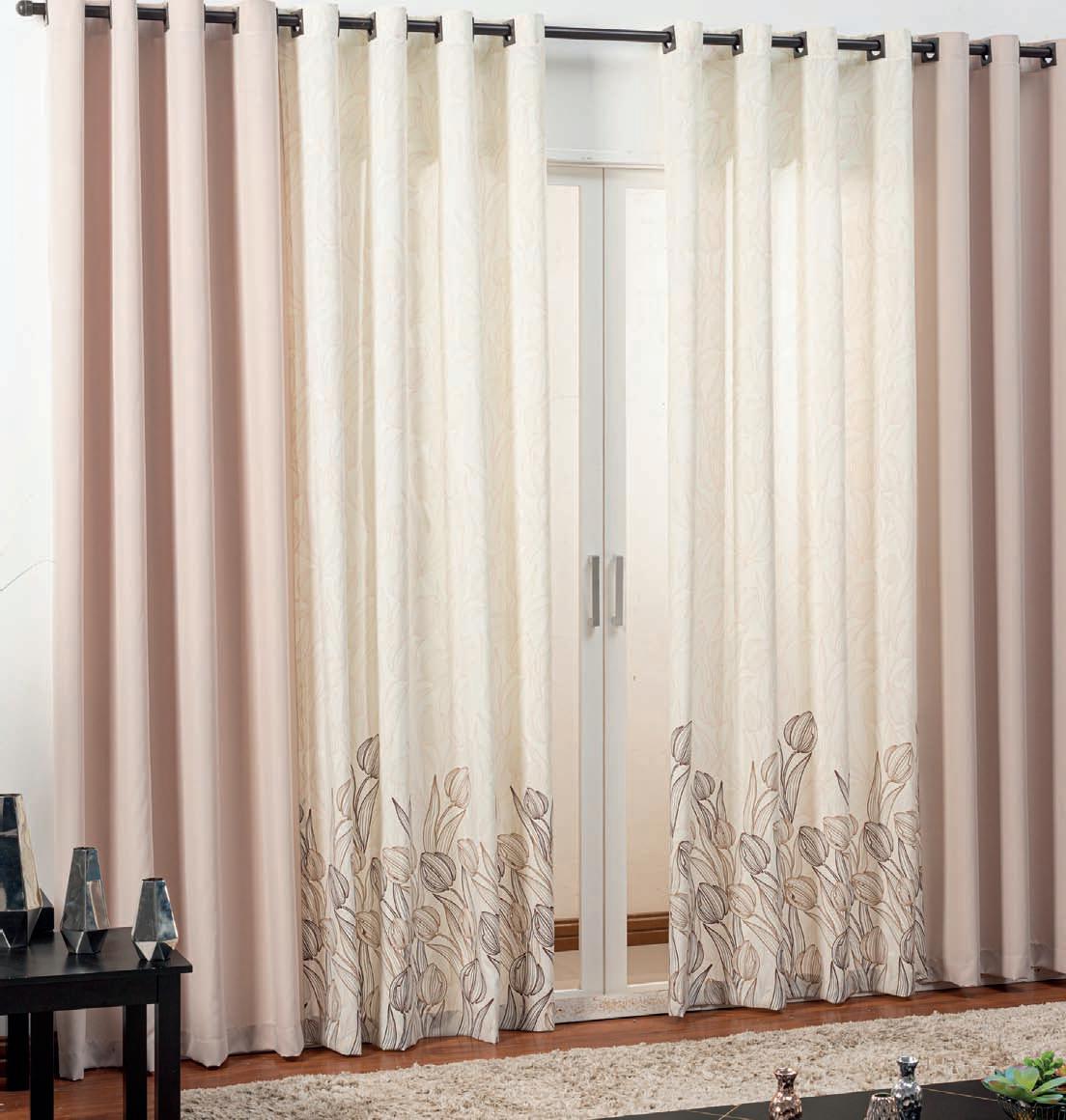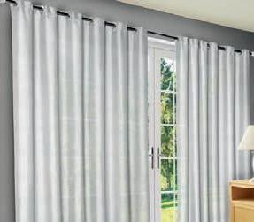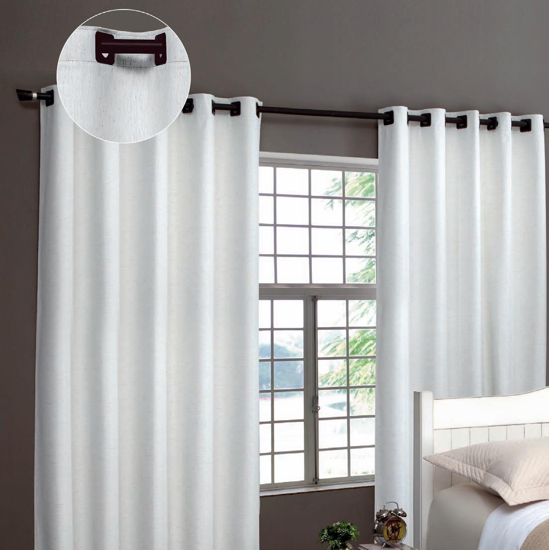 Cortina pronta para varão com ilhós Em tecido voil liso e forro em tecido microfibra costurado junto