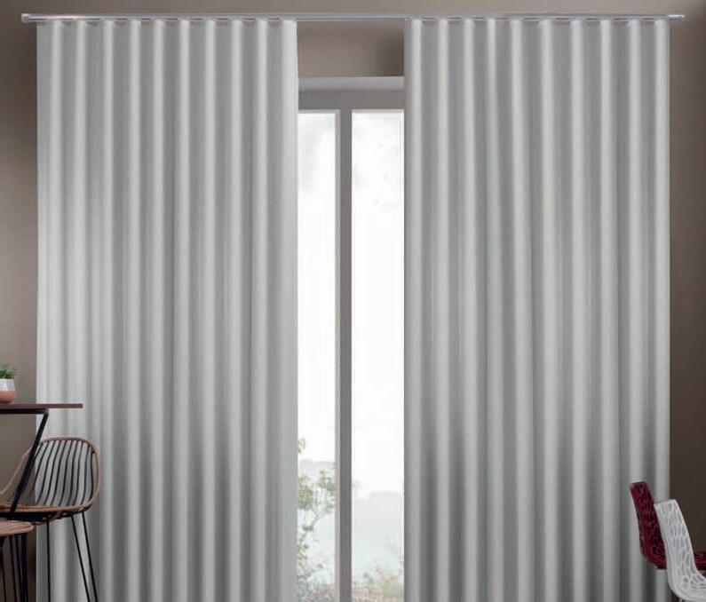 As cortinas com trilho possuem, em média, 50% de franzimento, essa medida pode variar 10% para mais ou para menos.