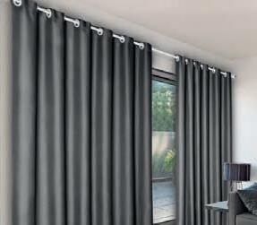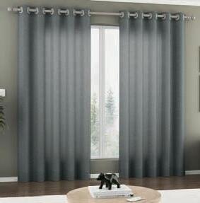 Cortina pronta para varão com ilhós cromado Em tecido blackout em poliéster