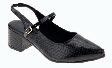 Scarpin, cabedal em PU, forração em tecido cacharrel, palmilha em látex forrada em PU, solado laqueado, salto forrado em PU 7,5 cm