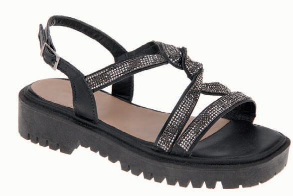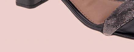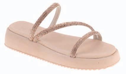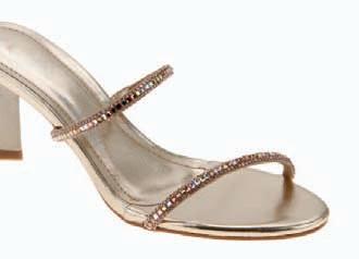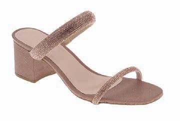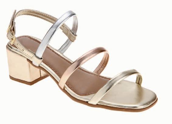 Sandália, cabedal em PU com brilho, forração em PU, palmilha em látex forrada em PU, solado em microgel, salto forrado em PU 5 cm