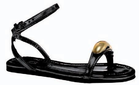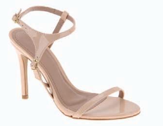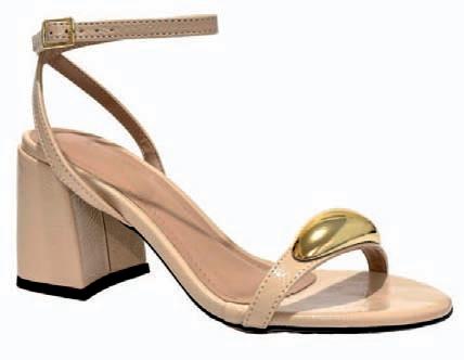 Sandália, cabedal em PU verniz, palmilha em látex forrada em PU, solado em TR emborrachado, salto forrado 7 cm