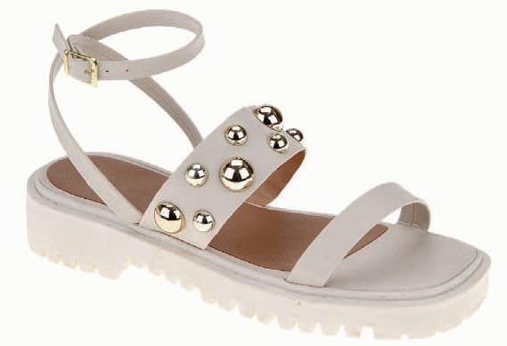 Sandália, cabedal em PU, forração em PU, palmilha em espuma forrada em PU, solado em microgel, salto forrado em PU 6,5 cm Sandália, cabedal em PU, forração em
