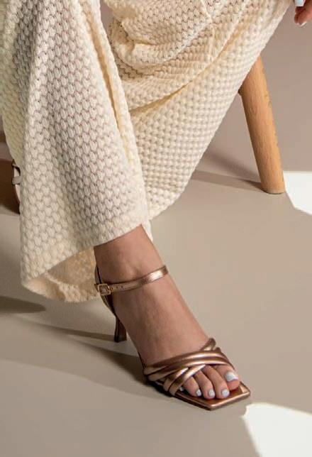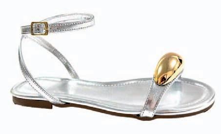 Sandália, cabedal em PU metalizado, forração em PU, palmilha em látex forrada em PU, solado laqueado, salto forrado em PU 10 cm