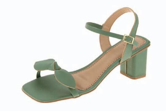 Sandália, cabedal em PU, forração em PU, palmilha em EVA forrada em PU, solado em PVC, salto forrado com PU 5 cm