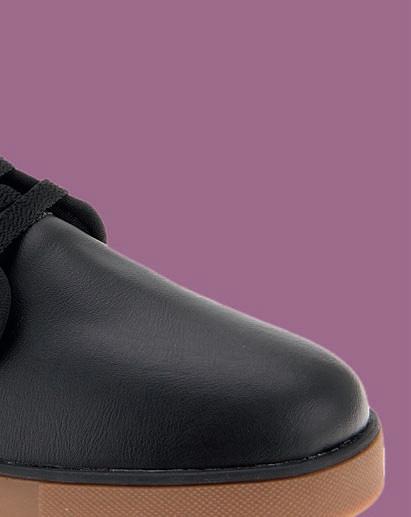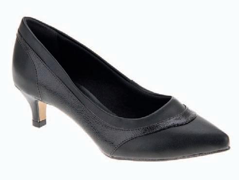 Scarpin, cabedal em PU, forração em tecido cacharrel, palmilha em látex forrada em PU, solado laqueado, salto forrado em PU 7,6 cm