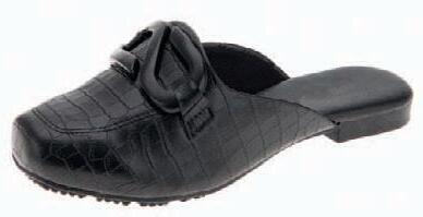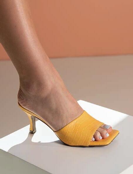 Mule, cabedal em PU, forração em PU, palmilha em látex forrada em PU, solado laqueado, salto pintado 7 cm