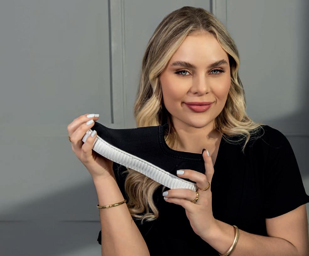 Composição: 82% algodão, 10% poliamida, 8% elastano