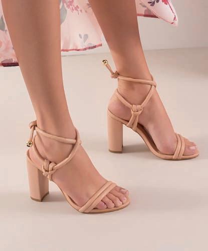 Sandália, cabedal em PU com amarração, forração em PU, palmilha em látex forrada em PU, solado laqueado, salto forrado em PU 6 cm