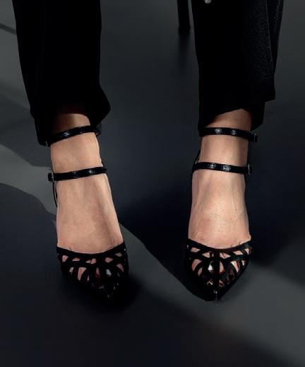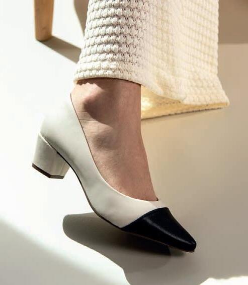 Scarpin chanel, cabedal em PU, forração em tecido cacharrel, palmilha em látex forrada em PU, solado laqueado, salto forrado em PU 7,5 cm