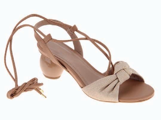 Sandália, cabedal em PU com tecido, forração em PU, palmilha em látex forrada em PU, solado laqueado, salto forrado em PU 11,5 cm