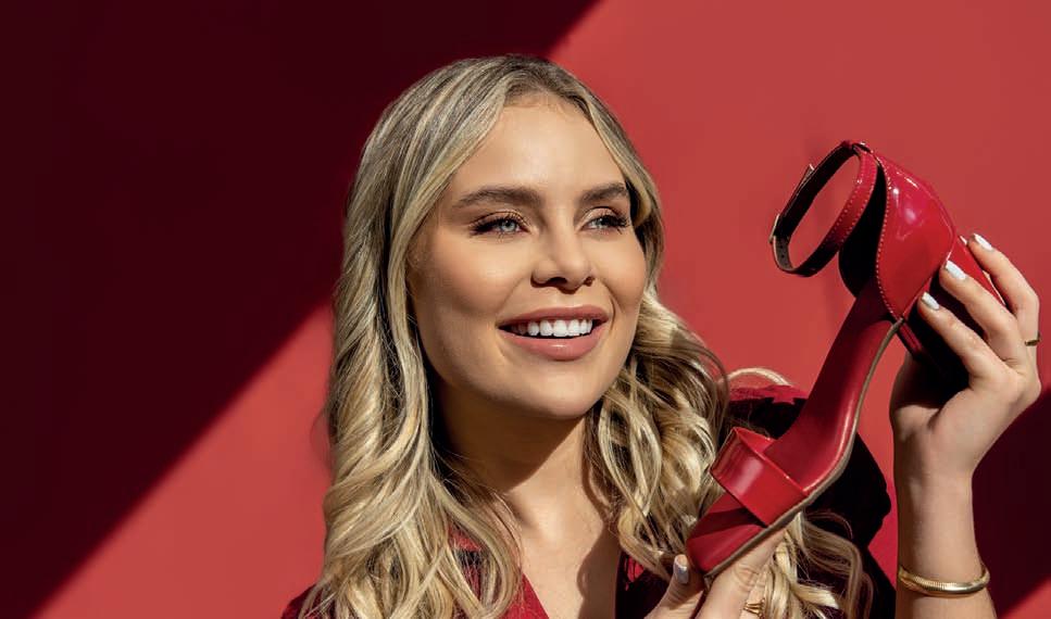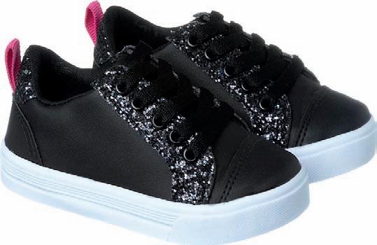 cabedal em PU com glítter e pedrarias, forração em PU, palmilha em látex forrada em PU, solado laqueado, salto forrado em PU 4,5 cm