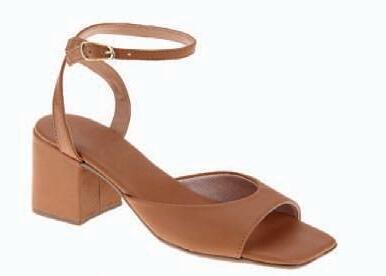 Sandália, cabedal em couro, forração em PU, palmilha em látex forrada em couro, solado em microgel, salto forrado em couro 5 cm