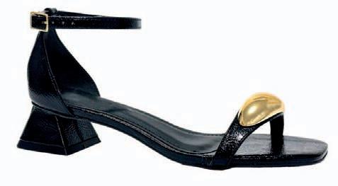Sandália, cabedal em PU e detalhe metalizado, forração em PU, palmilha em látex forrada em PU, solado laqueado, salto forrado em PU 4,5 cm