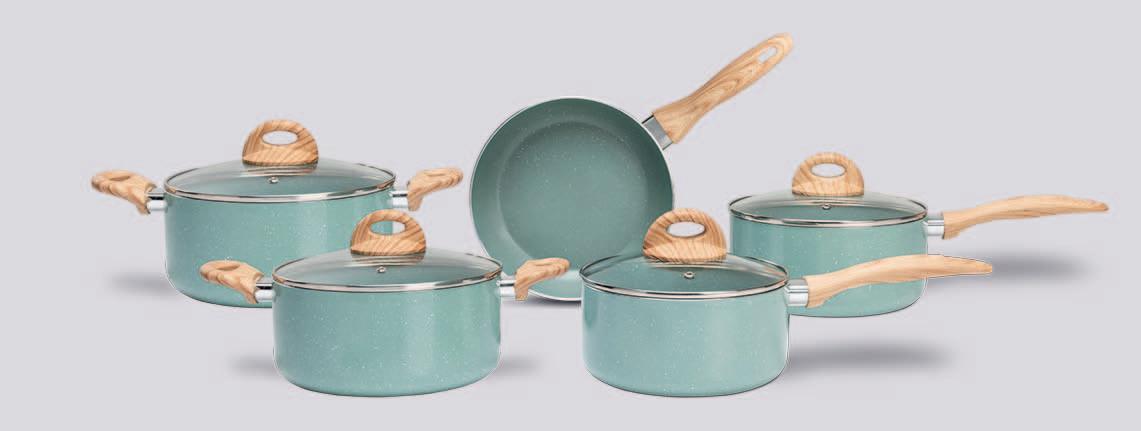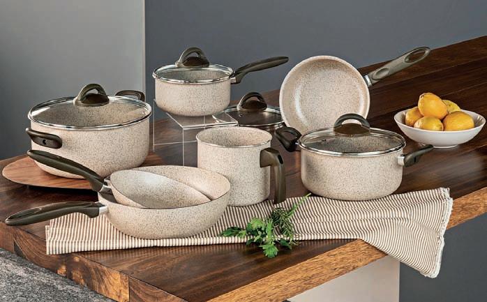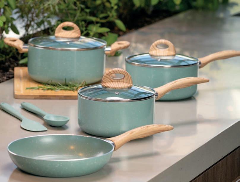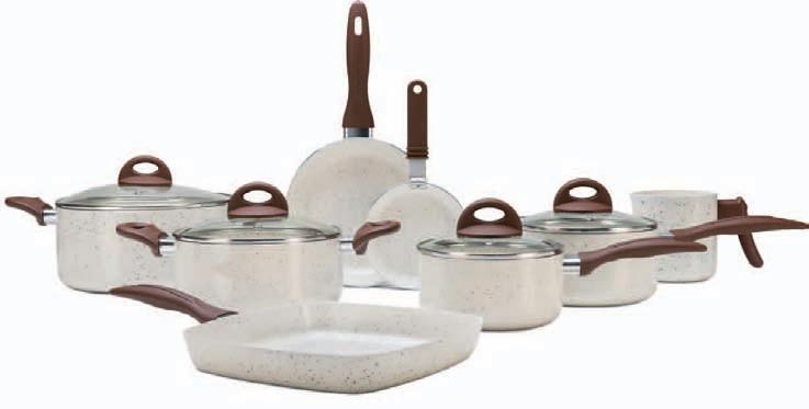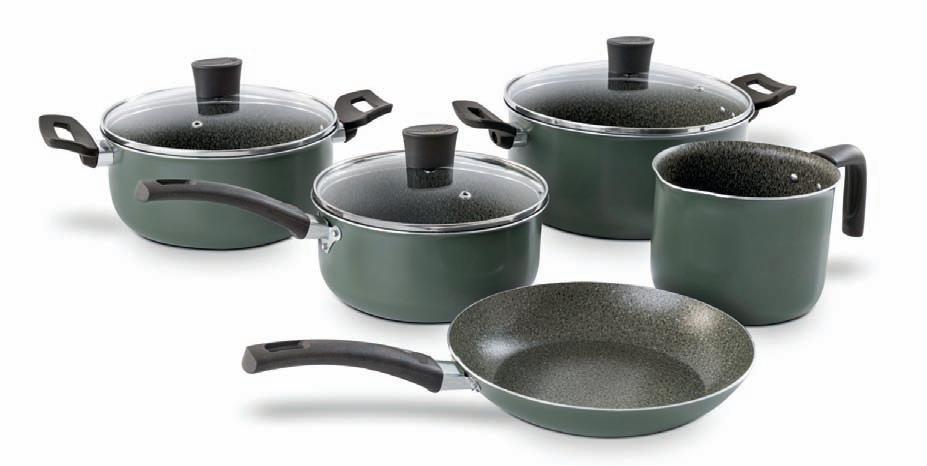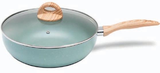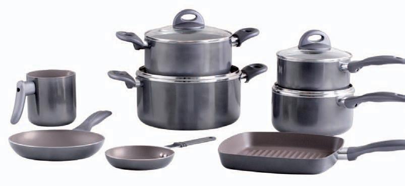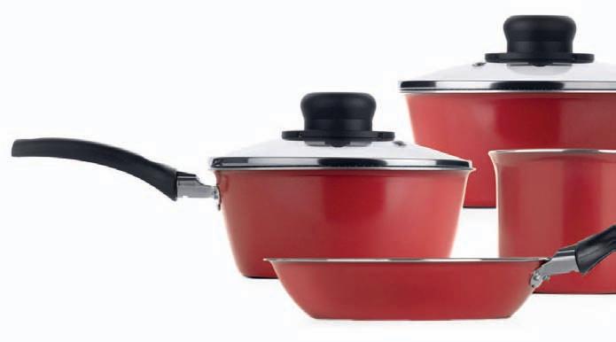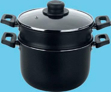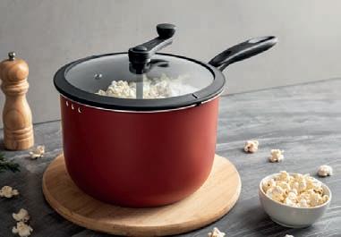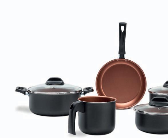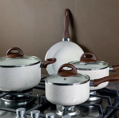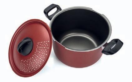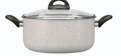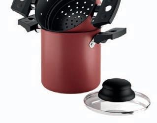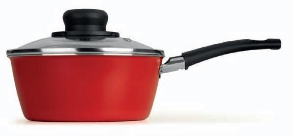 Em alumínio com revestimento cerâmico e mineral resist, tampa em vidro temperado, pegador e cabo soft touch