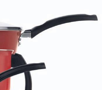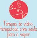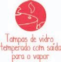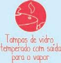 Pintura externa siliconada, tampa em vidro temperado, pegadores e cabos em baquelite com soft touch