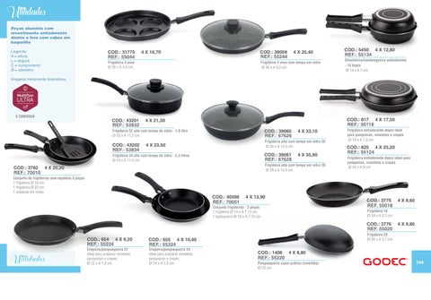 Utilidades Peças alumínio com revestimento antiaderente dentro e fora com cabos em baquelite Legenda: A = altura L = largura C = comprimento Ø = diâmetro