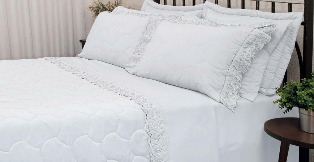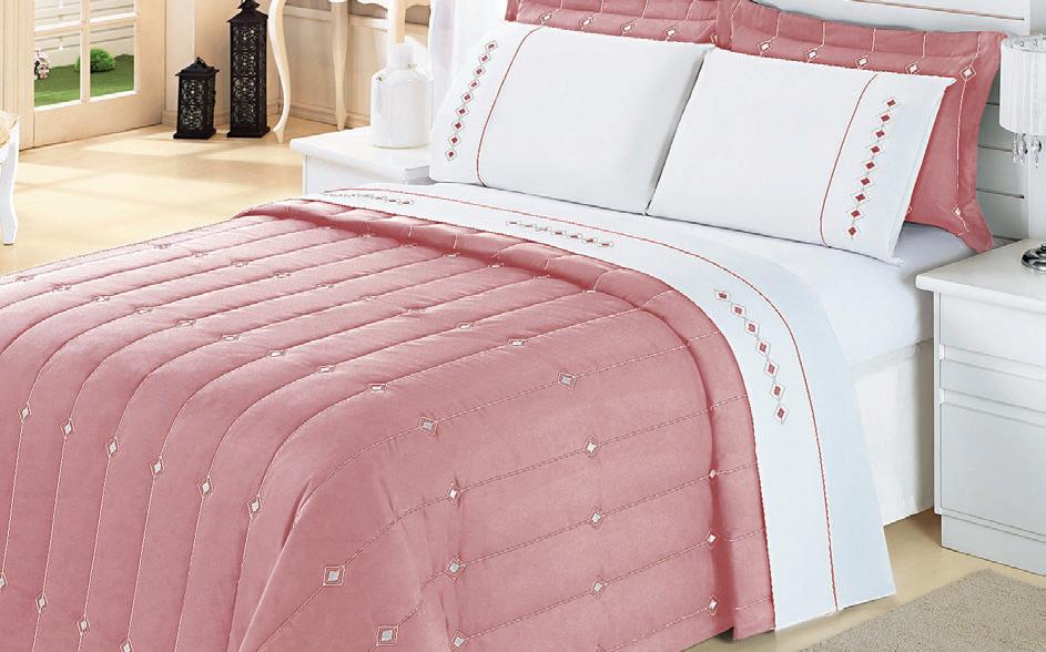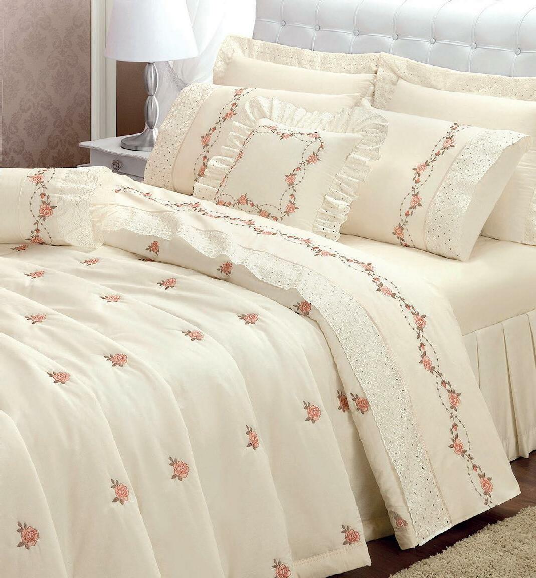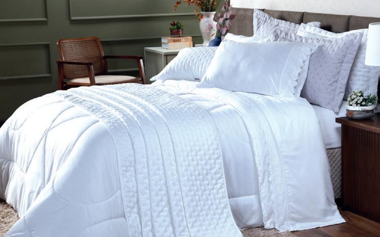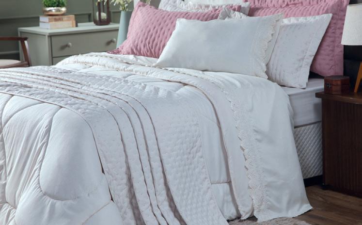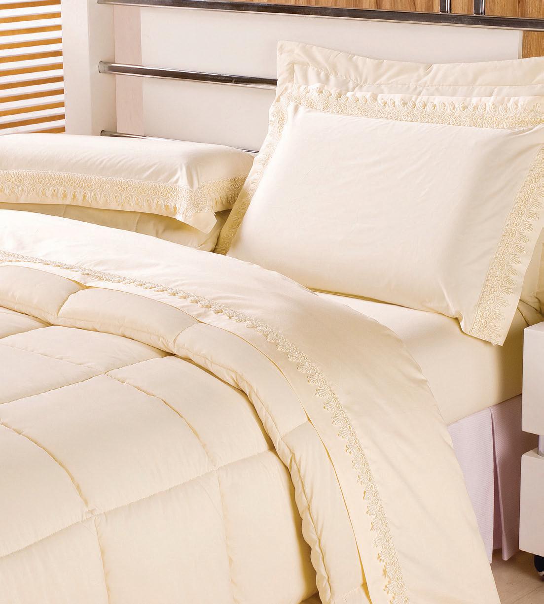 com barra em renda bordada Composição: Tecido 300 fios100% algodão EnchimentoFibra siliconizada100% poliéster
